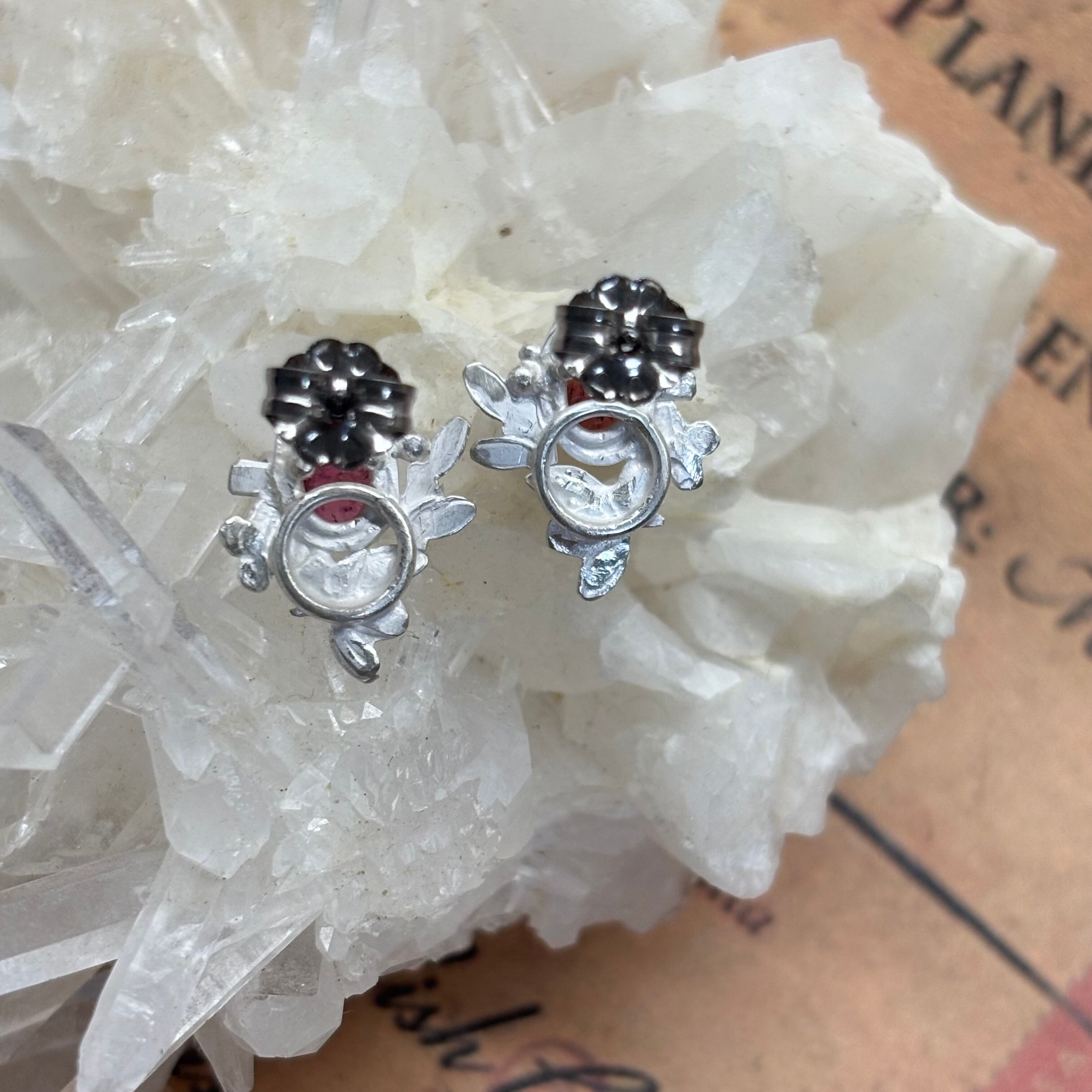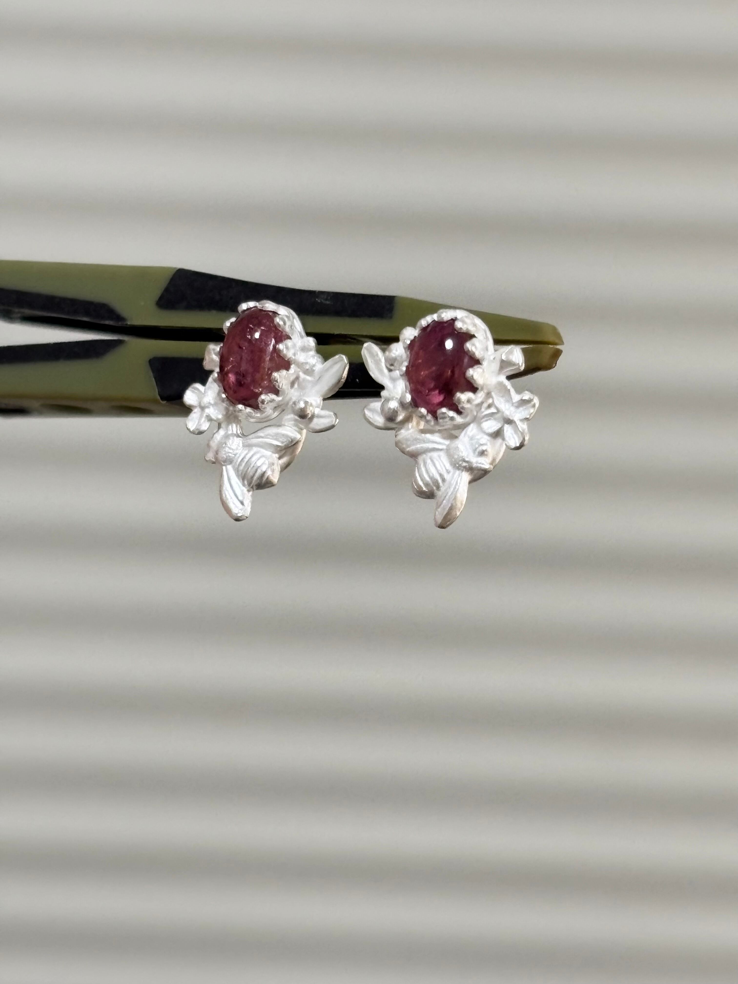 ピンクトルマリンのカボションを留めたスタッドピアスです。